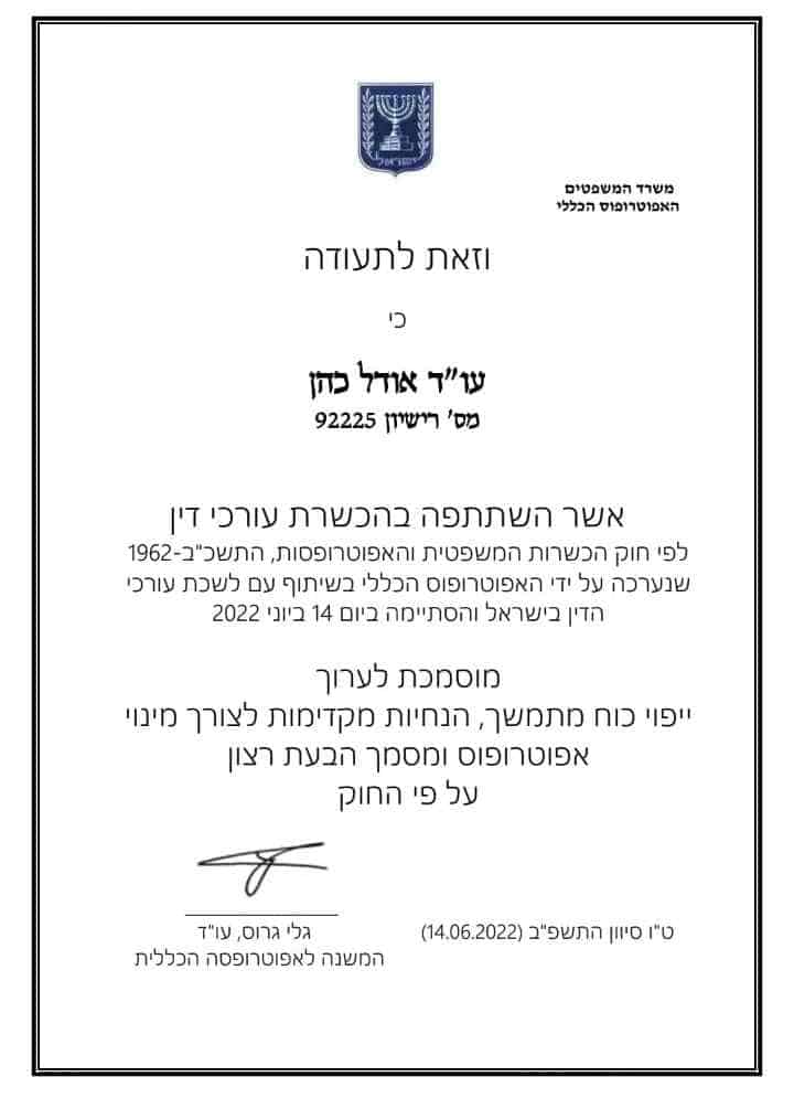 אודל כהן נדל"ן ומקרקעין משפט אזרחי מסחרי  צוואות וירושות  יפוי כח מתמשך
