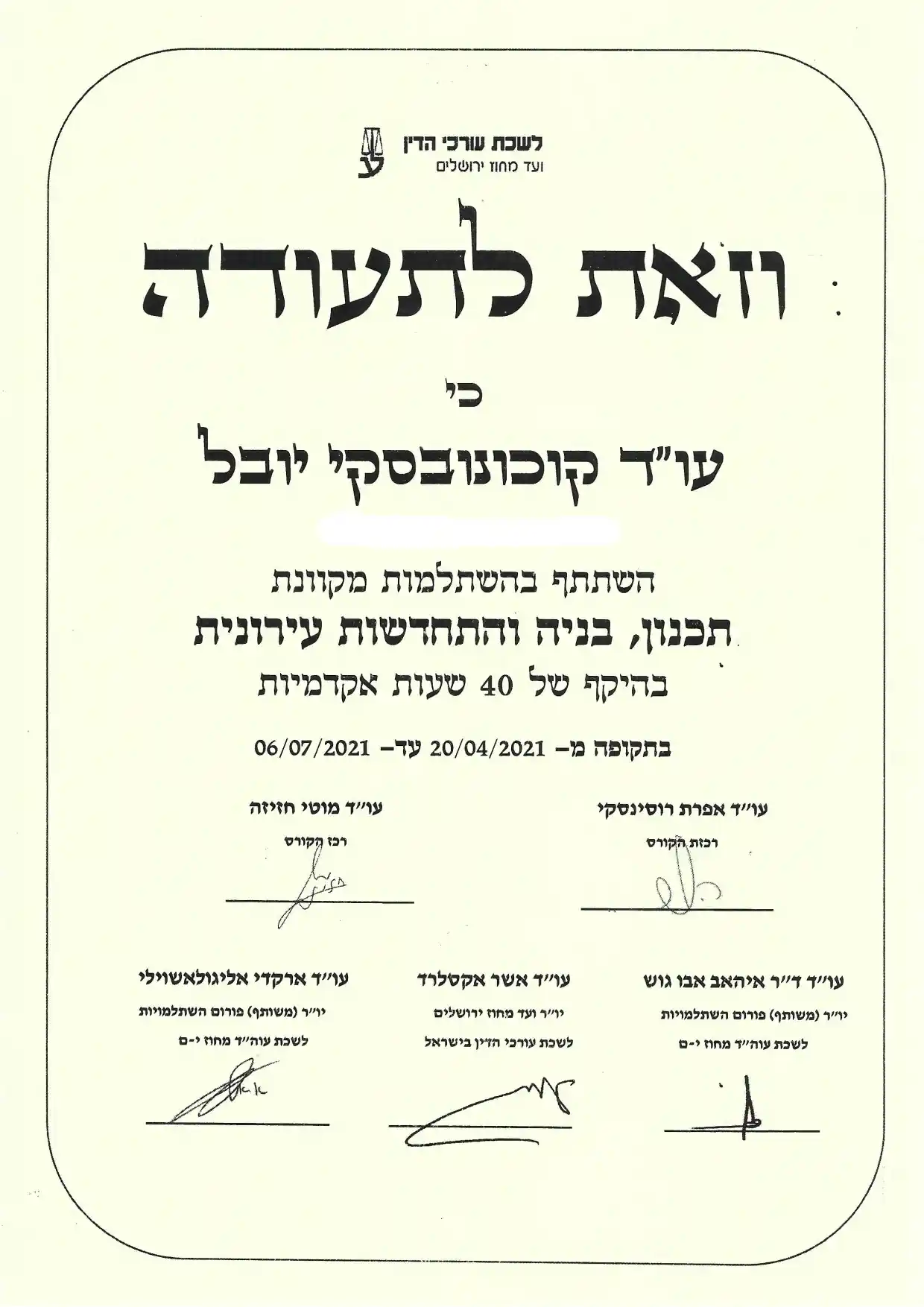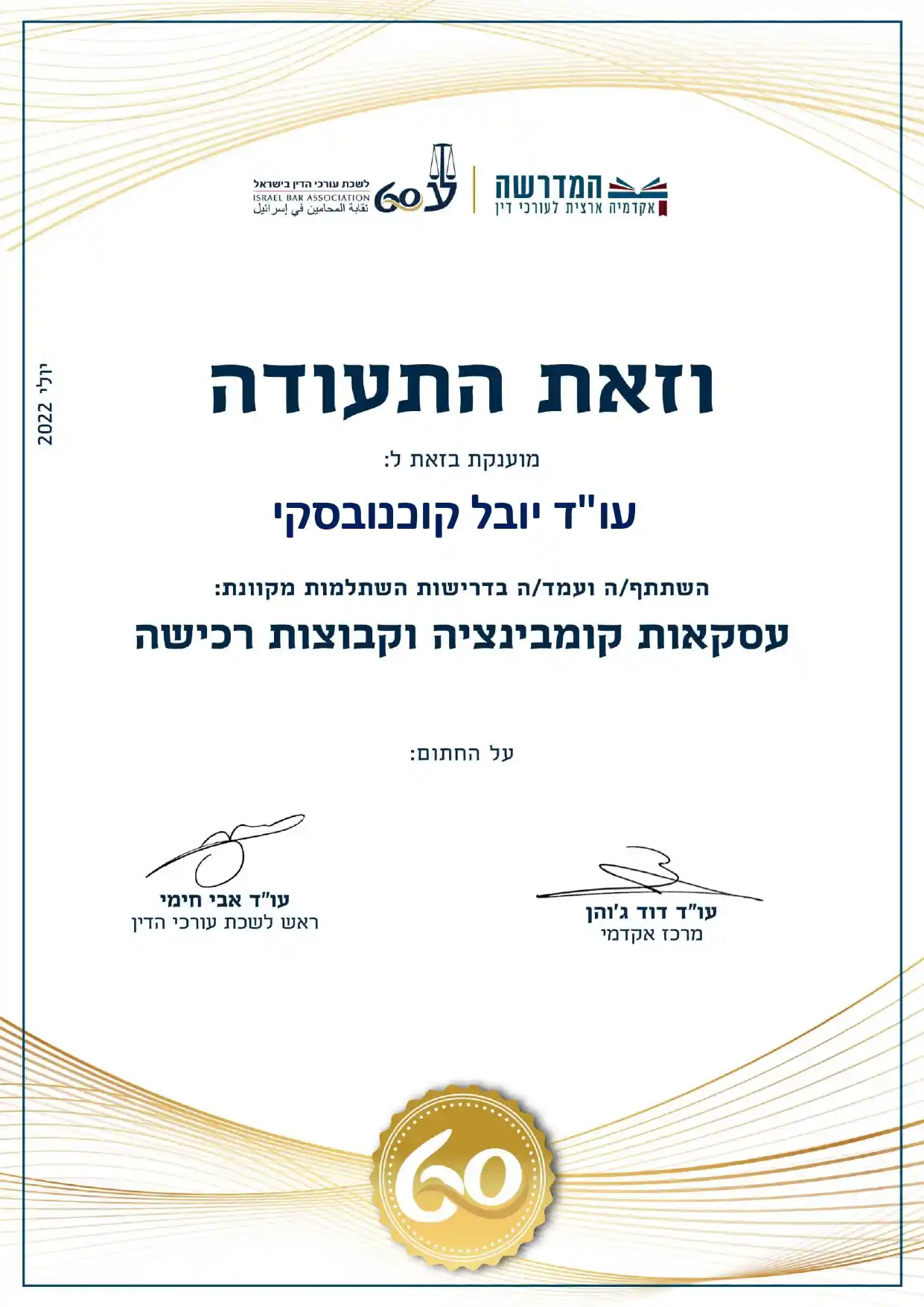 מייסדת המשרד הינה יובל קוכנובסקי ג'ורנו – עורכת דין בוגרת תואר ראשון במשפטים בהצטיינות באוניברסיטת בר אילן (LL.B).